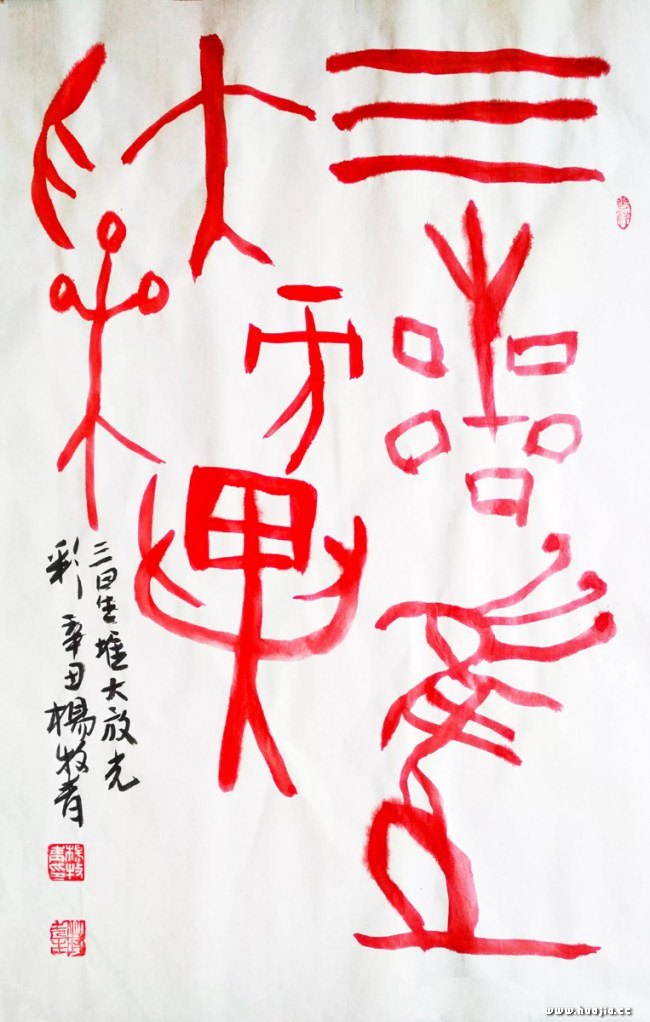 上图:杨牧青甲骨文书法<三星堆大放异彩>2.7平尺原创作品