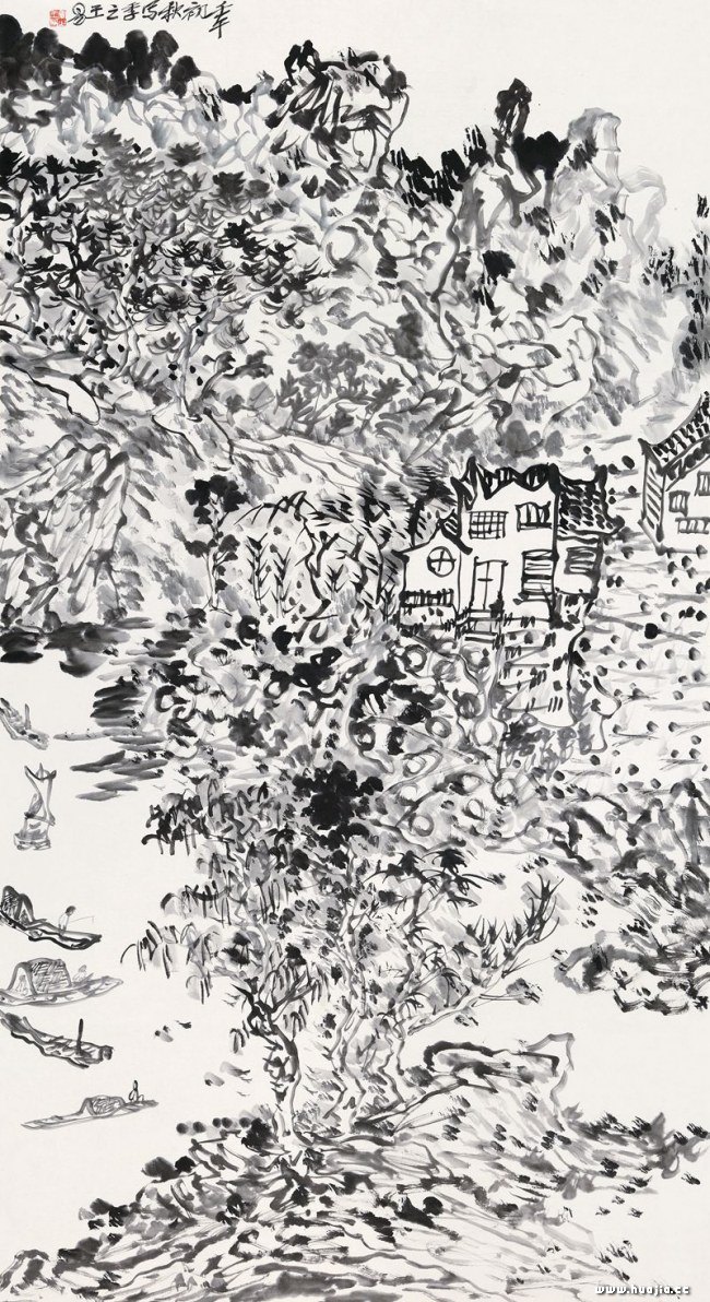 6、王敬恒艺术吸收黄宾虹傅抱石、潘天寿、李可染艺术大师创作的得与失,开辟了全新的表达方式;