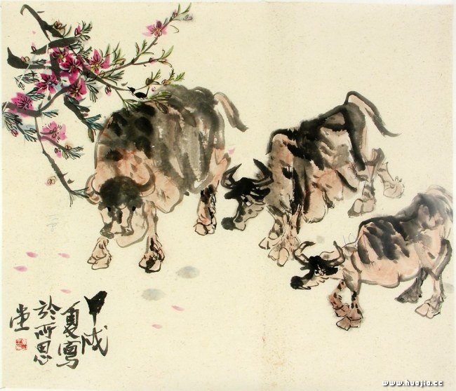 《桃花与牛》 王敬恒  66X76cm  1994年  中国美术馆藏