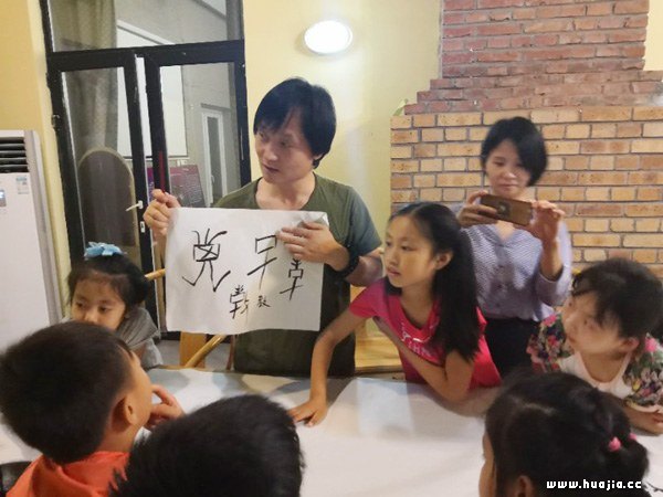 是日夜,杨牧青老师即兴为在悠然谷科普中心开展夏令营活动的小学生们进行了甲骨文文字示范与讲述。