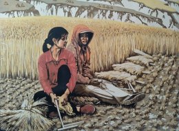 简 介:“镰手”即收割庄稼的能手,一般需两人默契合作,一人在前边割边下腰(麦草拧成的捆麦绳),一人在后面边割边圆腰(把割好的麦子捆好),因此也称为一对联手。生活中“联手”也是最好的合作者、兄弟、姐妹、妯娌、要好的朋友的称谓