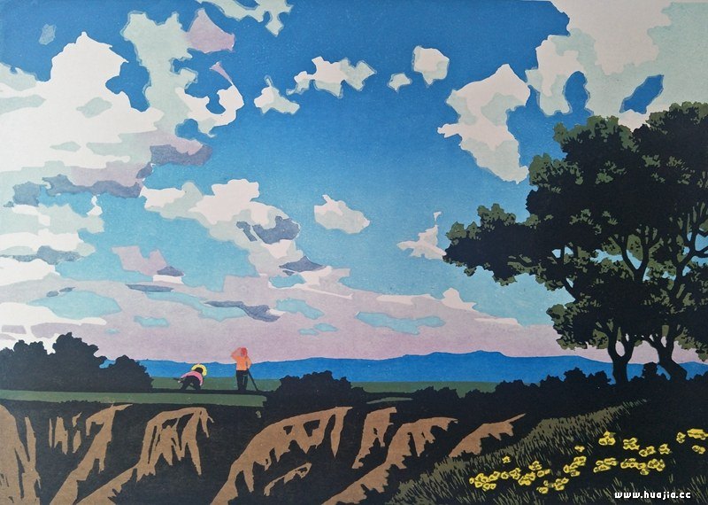 以农村农耕生活为主题的黄土情版画《天地之间》之六
