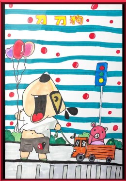 | 狗狗右手抓着汽球,左手拖着小熊卡车。大声一吼,激情唱响。 | |